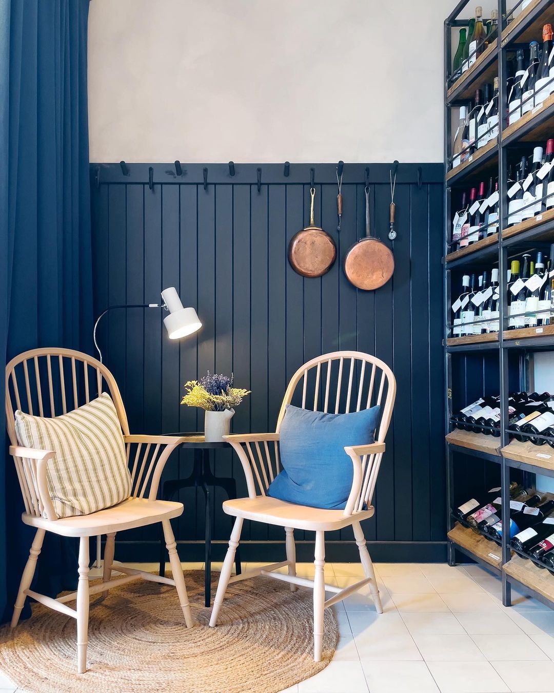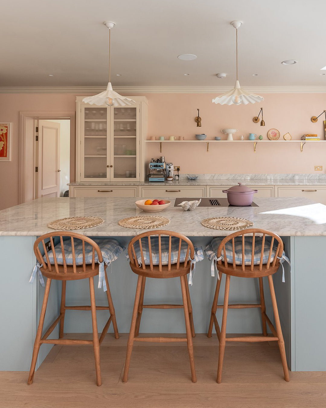 Known for designing interiors with a playful touch, Uns Hobbs works with us to incorporate natural wooden furniture into her schemes, creating a beautiful contrast with the painted elements that characterize her work.