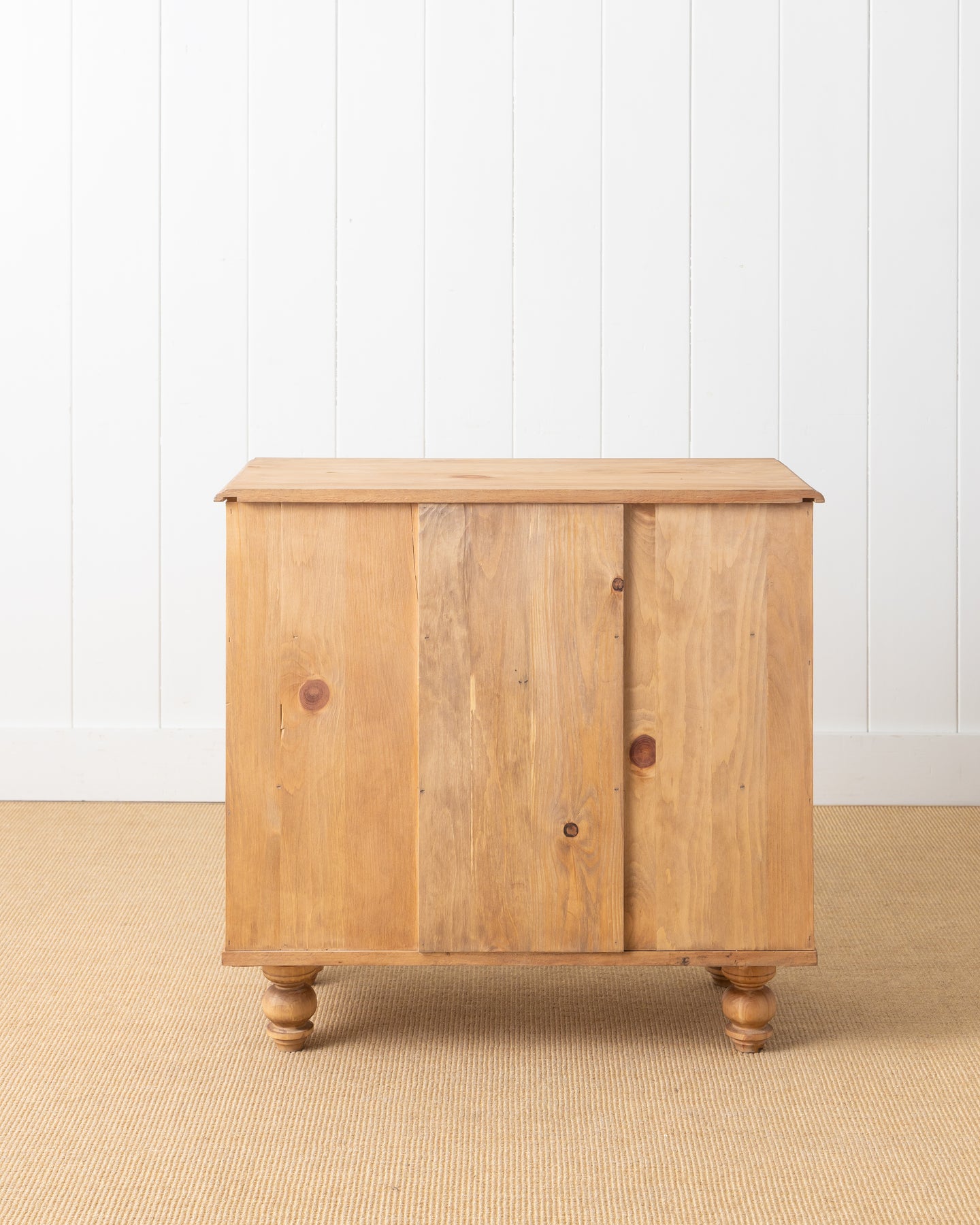 We took one of our original antique English pine chests and used it as a blueprint to recreate this classic. It’s built entirely of solid pine using traditional joinery, from the hand-fitted dovetailed drawers to the tulip feet that were custom turned to match the original. There are no wood composites or plywood here—just real, solid pine throughout. There is a great bit of history in the wood, too: the pine used by English craftsmen in the 1800s was often sourced from North American forests, so bringing these designs back to the U.S. feels like a bit of a homecoming. By using those same local woods today, our craftsmen can maintain the style and methods that make these pieces stand the test of time. We originally started building these because so many people are looking for a pair of antique pine chests to use as nightstands—but as any collector knows, original antique pine chests are getting harder and harder to find, let alone a matching pair.