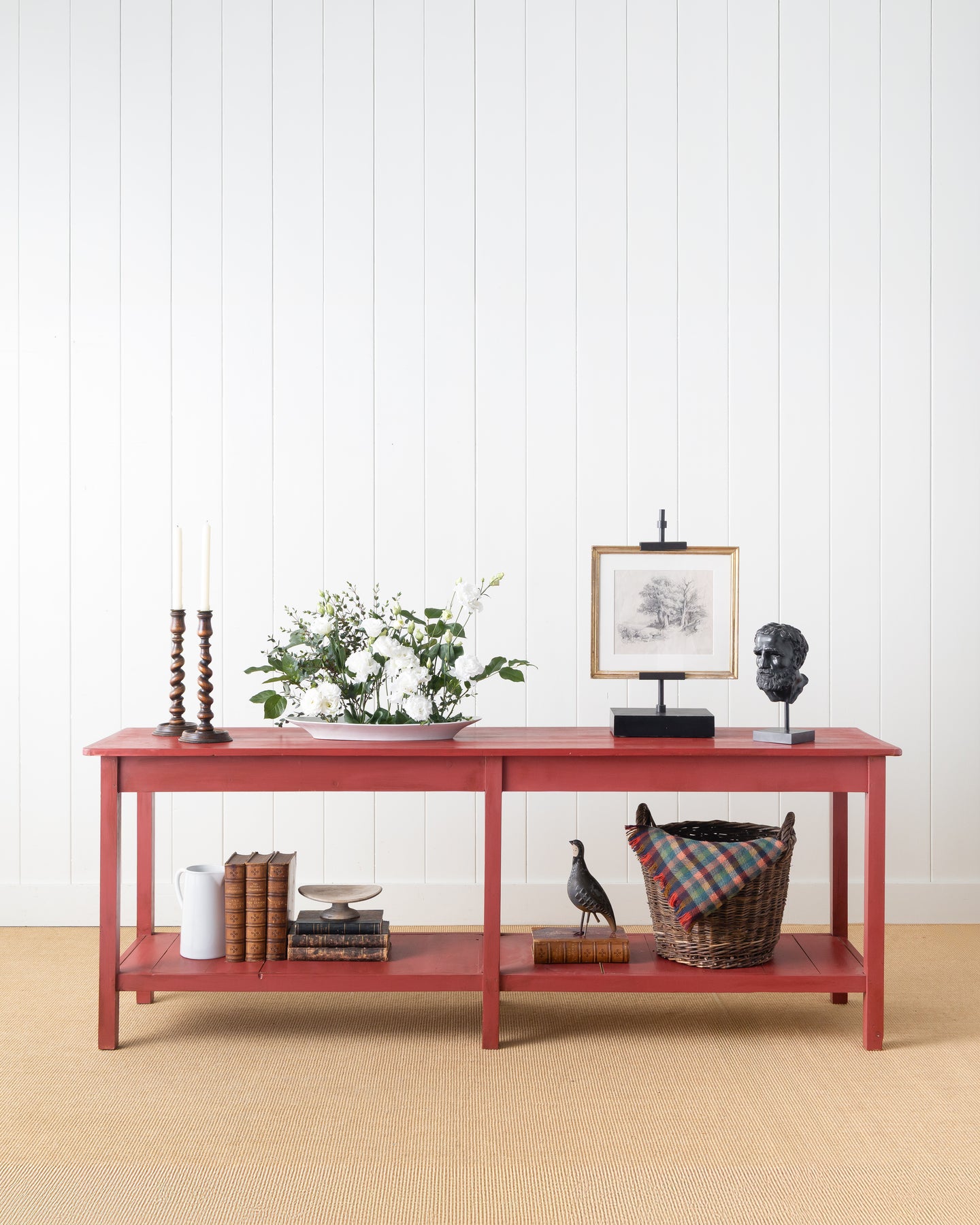 Inspired by tables that might be found in the Tradesman's entrance of an English country house. The Tradesmen's entrance was a working part of the house where tradesmen would deliver their wares - Butchers, Grocers, Candlemakers, Basketmakers all would have used this entrance to liaise with the staff.